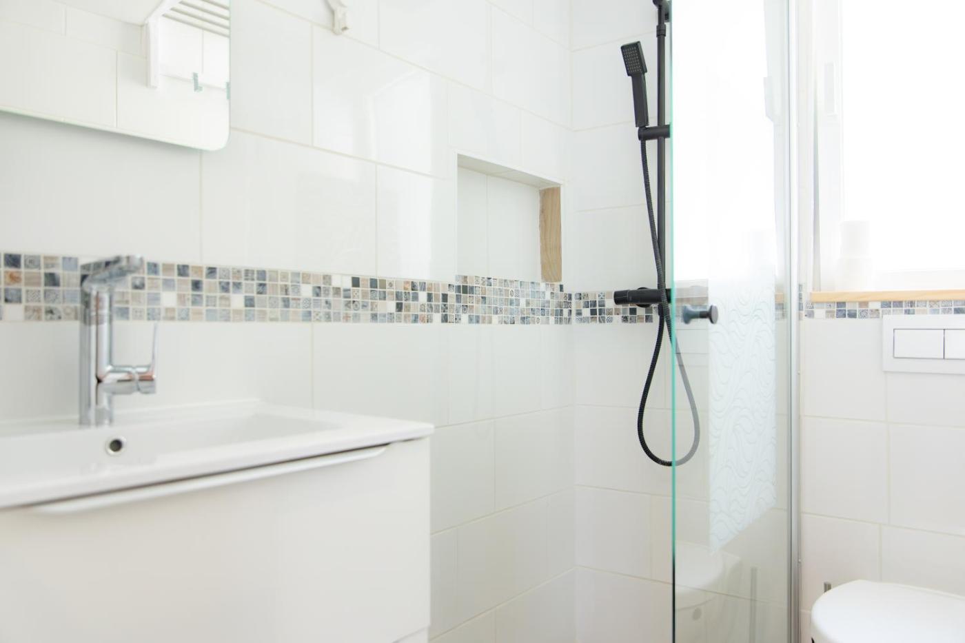 One-Bedroom Apartment. Boasting a private entrance, this apartment comes with a kitchen, 1 bedroom and 1 bathroom with a shower and a hairdryer. Guests can make meals in the kitchen that features a stovetop, a refrigerator, kitchenware and a microwave. This apartment has a tea and coffee maker, a wardrobe, flat-screen TV with satellite channels, as well as chocolate for guests. The unit has 1 bed.