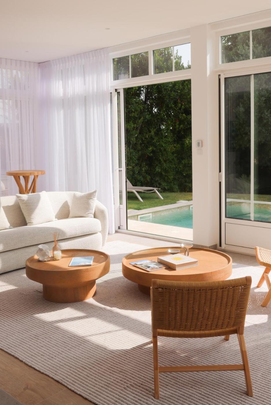 Guests can enjoy the outdoor swimming pool and garden at the villa.