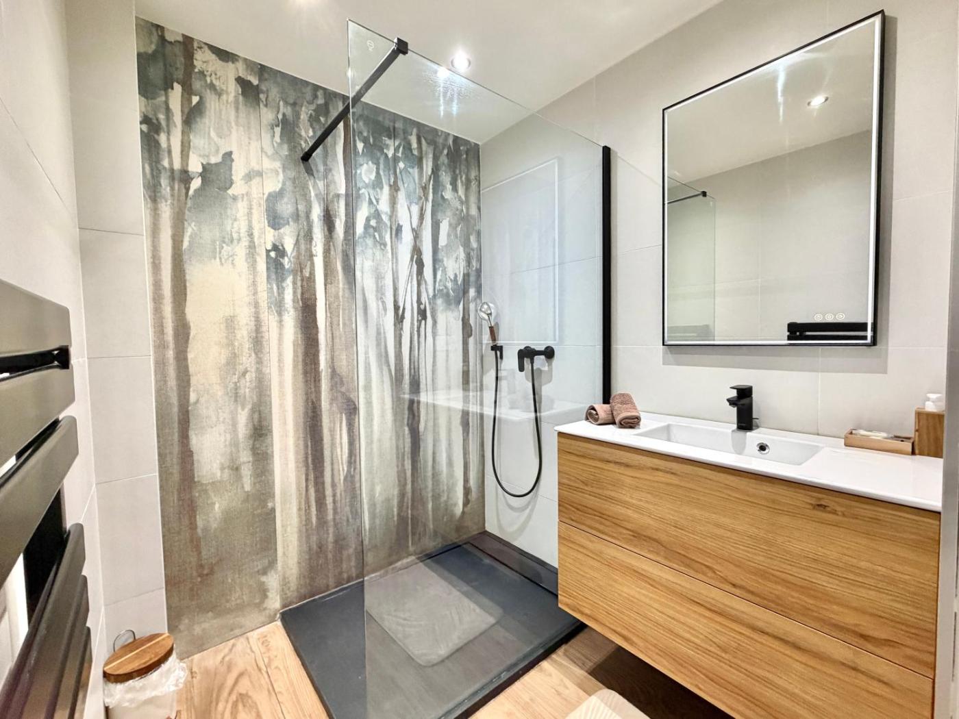 Two-Bedroom Apartment. This spacious apartment comprises 1 living room, 2 separate bedrooms and 1 bathroom with a walk-in shower and a hairdryer. Meals can be prepared in the kitchen, which comes with a stovetop, a refrigerator, a dishwasher and kitchenware. This apartment is air-conditioned and features a seating area with a flat-screen TV, a coffee machine, a dining area, a wardrobe, as well as a dressing room. The unit offers 2 beds.
