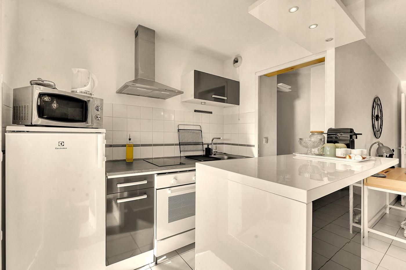 One-Bedroom Apartment. Boasting a private entrance, this air-conditioned apartment comes with 1 living room, 1 separate bedroom and 1 bathroom with a bath and a shower. In the well-equipped kitchen, guests will find a stovetop, a refrigerator, kitchenware and an oven. This apartment has a washing machine, soundproof walls, a flat-screen TV and a balcony. The unit has 2 beds.