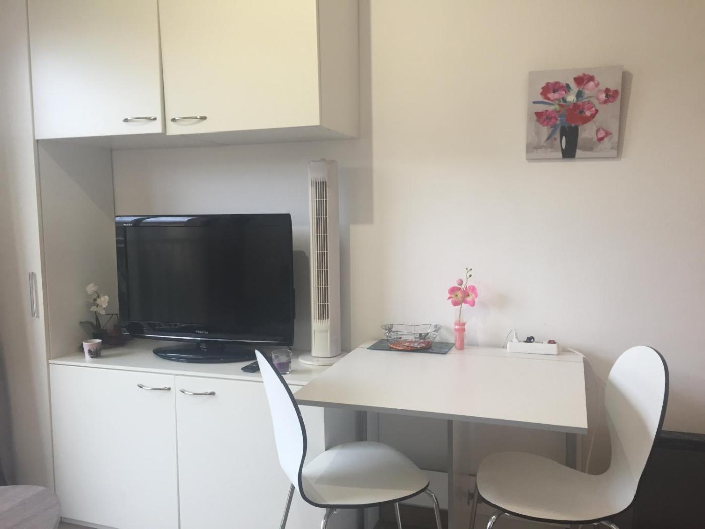 Studio with Sofa Bed. The studio features a private bathroom, a private entrance, a tea and coffee maker, as well as a seating area with a flat-screen TV. In the fully equipped kitchen, guests will find a stovetop, a refrigerator, kitchenware and a microwave. The studio provides a dining area, a wardrobe, tumble dryer, a TV, as well as garden views. The unit offers 1 bed.