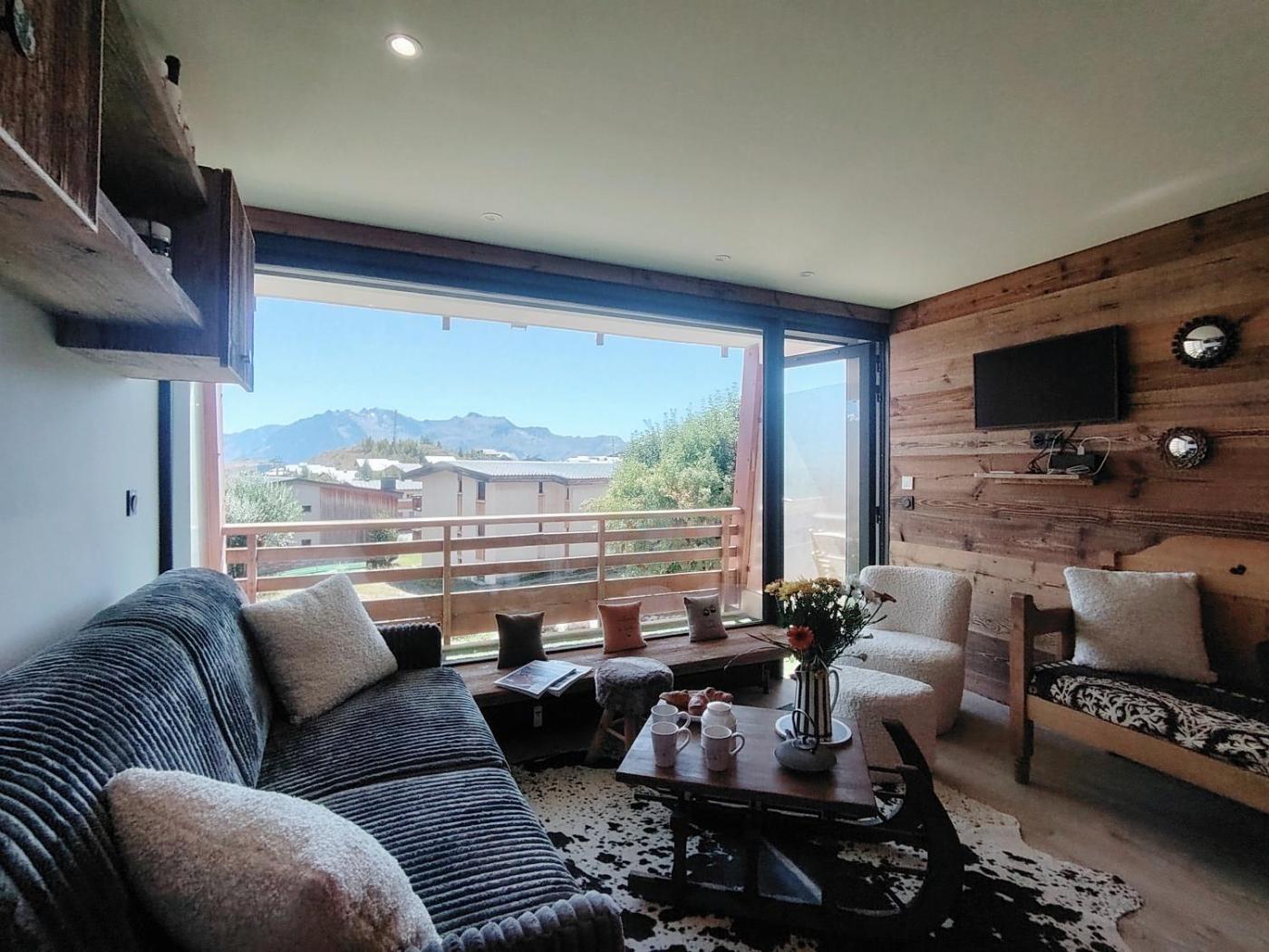The apartment with a balcony and mountain views has 1 bedroom, a living room, a flat-screen TV, an equipped kitchen with a dishwasher and an oven, and 1 bathroom with a shower. Towels and bed linen are available in the apartment. The accommodation is non-smoking.