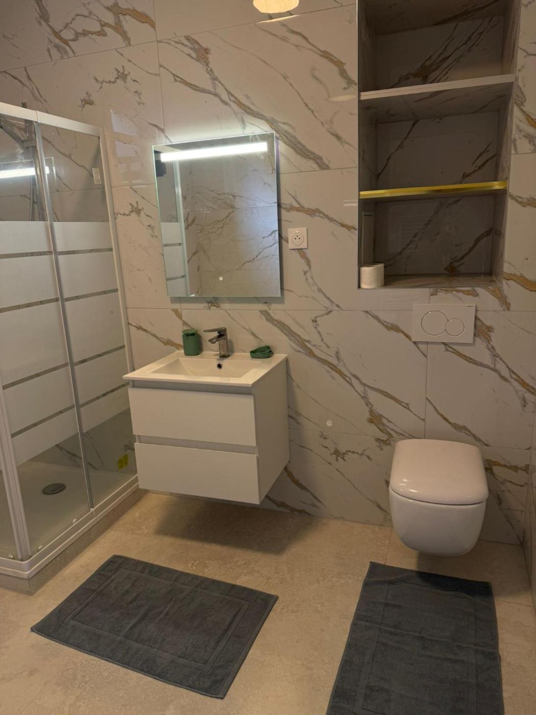 One-Bedroom Apartment. This apartment is comprised of 1 living room, 1 separate bedroom and 1 bathroom with a walk-in shower and free toiletries. In the kitchen, guests will find a stovetop, a refrigerator, an oven and a microwave. The apartment offers a flat-screen TV, a coffee machine, a dining area, a tiled floor as well as garden views. The unit offers 2 beds. ;