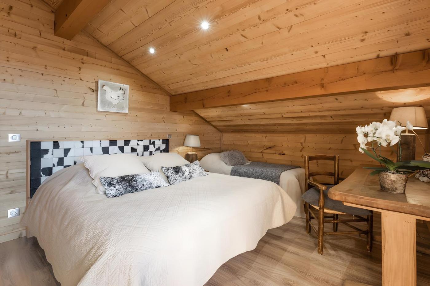 Three-Bedroom Chalet. The hot tub and fireplace are the special features of this chalet. Boasting a private entrance, this spacious chalet also comes with 3 separate bedrooms and 2 bathrooms with a shower and a hairdryer. Guests can make meals in the kitchen that features a stovetop, a dishwasher, kitchenware and an oven. Featuring a terrace with garden views, this chalet also features a washing machine and a TV. The unit has 4 beds.