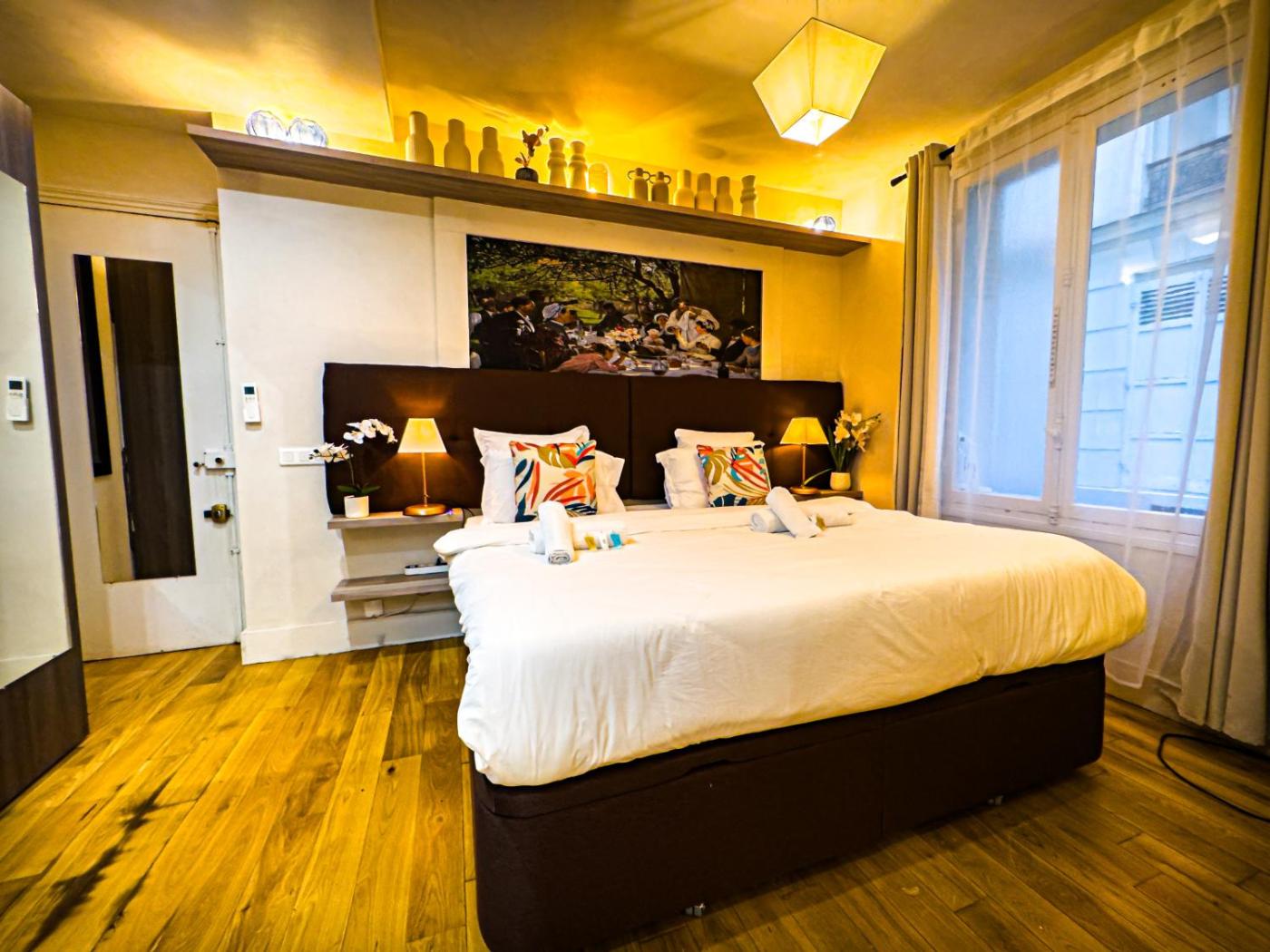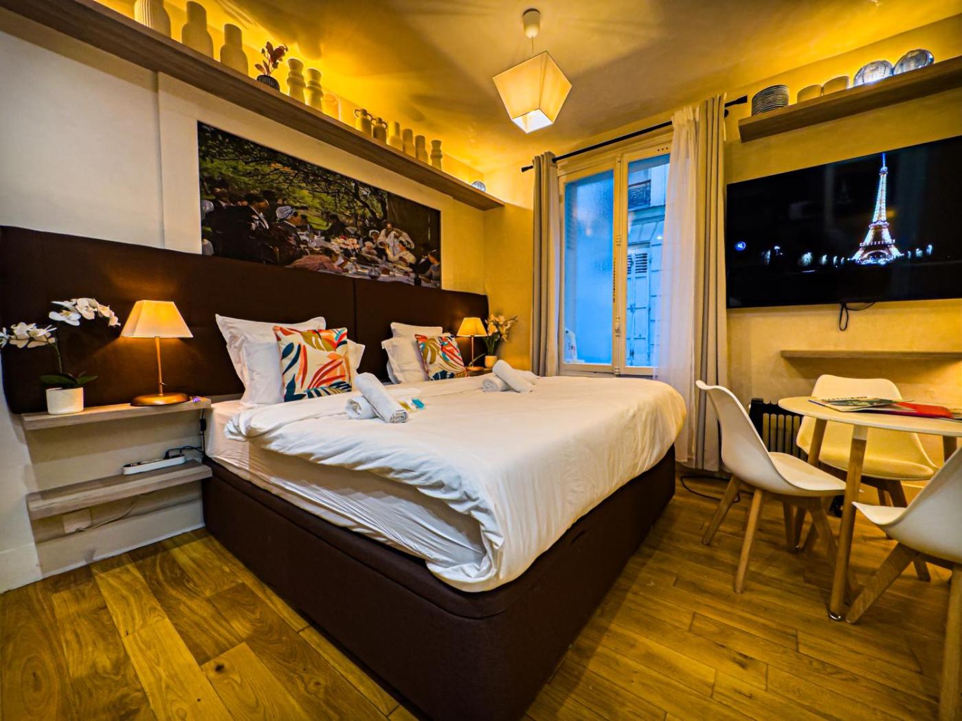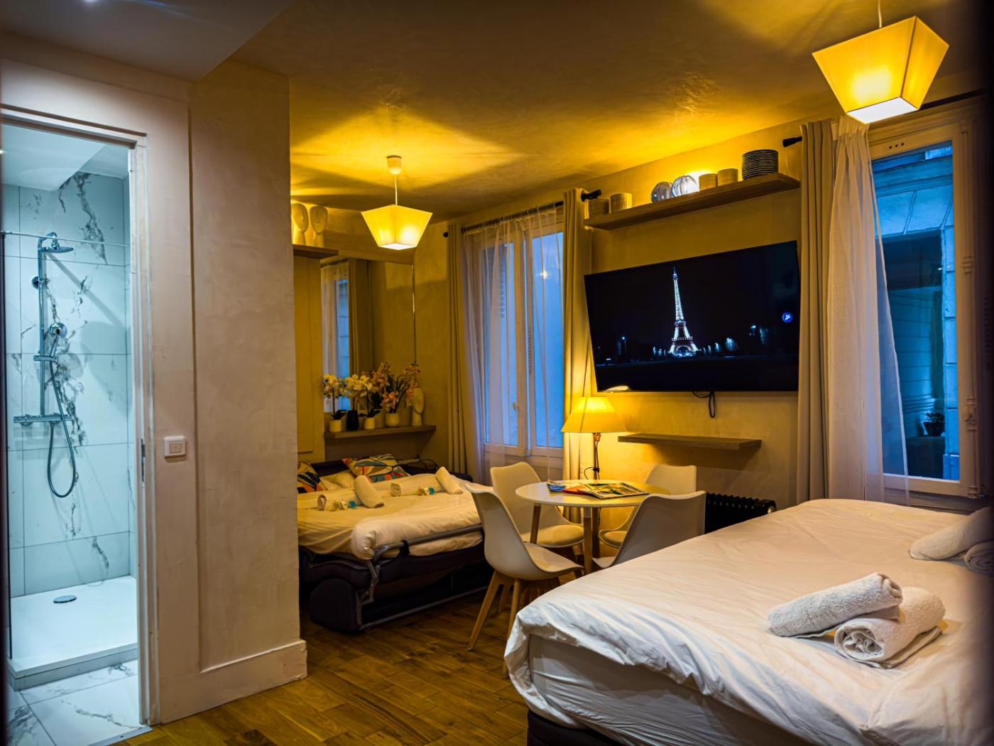 Right in the centre of Paris,within a short distance of Arc de Triomphe and Palais des Congrès de Paris, Eiffel-Tower, Suite Trocadéro - 4 people offers free WiFi, air conditioning and household amenities such as a fridge and coffee machine. It is located 2.7 km from Musée de lOrangerie and offers full-day security. The property is soundproof and is situated 1.2 km from Eiffel Tower.