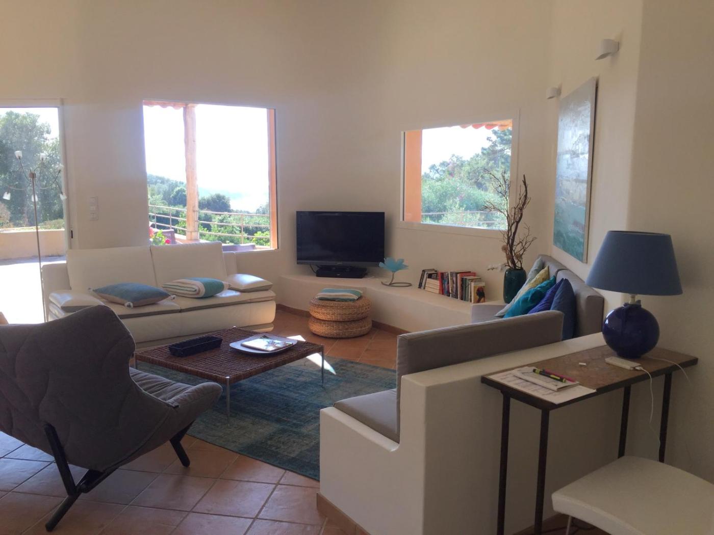 Villa with Private Pool. The private pool is the standout feature of this villa. This air-conditioned villa comes with 1 living room, 4 separate bedrooms and 3 bathrooms with a bath. Guests will find a stovetop, a refrigerator, a dishwasher and kitchenware in the kitchen. The villa also includes a barbecue. Boasting a terrace with sea views, this villa also features a washing machine and a flat-screen TV with satellite channels. The unit has 7 beds.