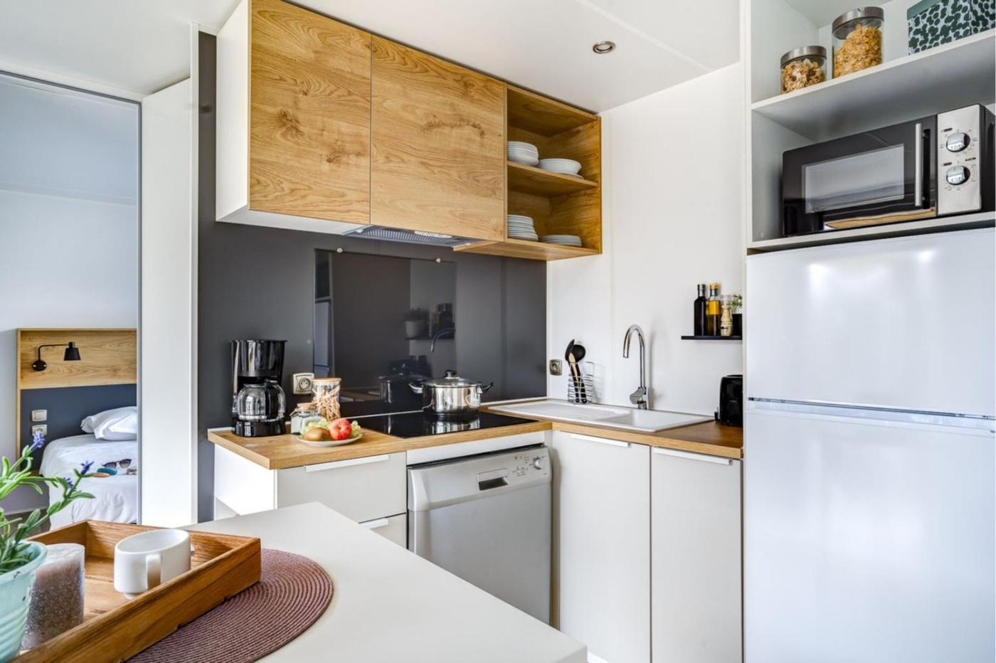 This campground has a living room and a fully equipped kitchen with a dishwasher and a fridge. A TV is available.