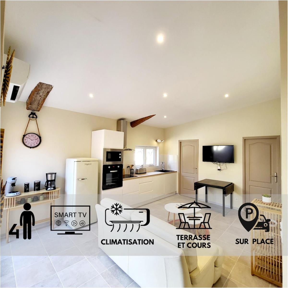 Maison au calme - Clim - Wi-Fi - terrasse et cours is situated in Salles-dAude, 19 km from Saint-Nazaire Cathedral, 20 km from Beziers Arena, and 24 km from Mediterranee Stadium. This property offers access to a terrace, free private parking and free WiFi. The property is non-smoking and is16 km from Fonserannes Lock.