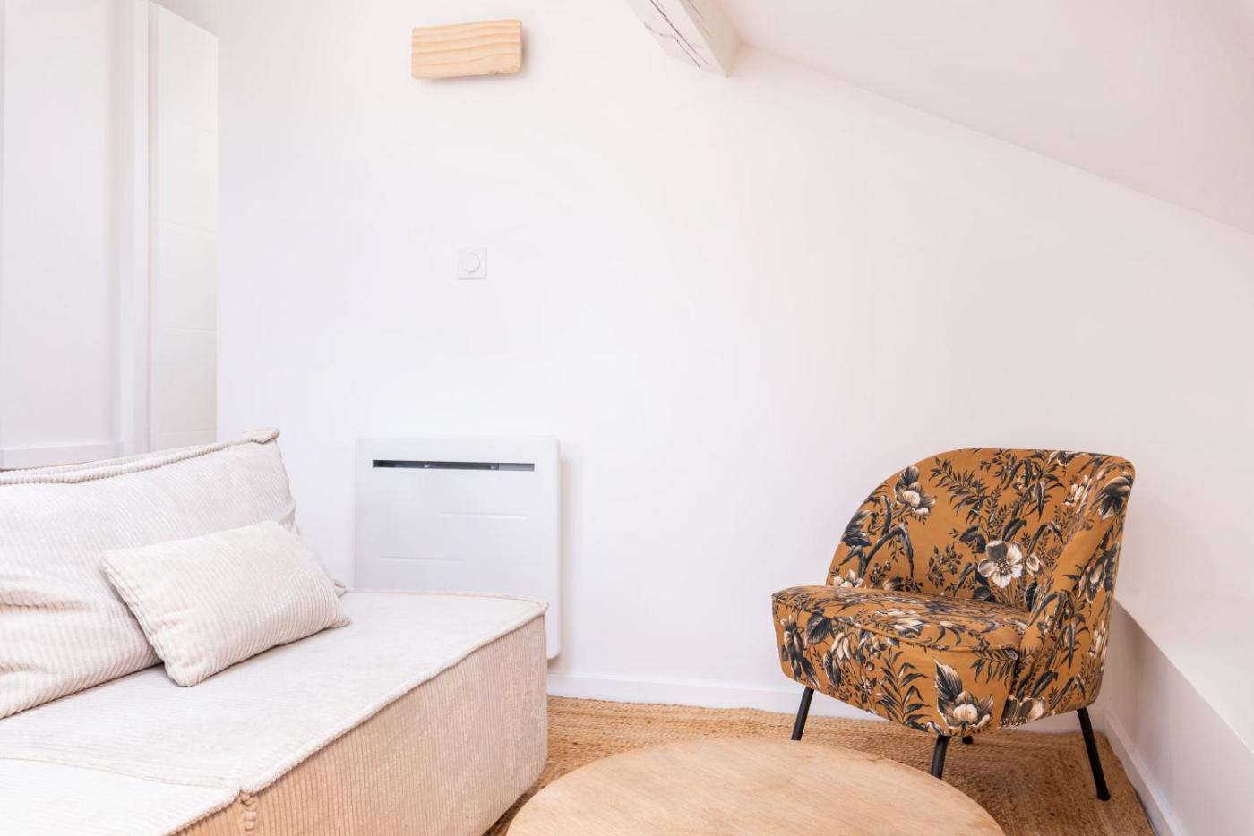 The apartment with a terrace and garden views has 1 bedroom, a living room, a flat-screen TV, an equipped kitchen with a dishwasher and a microwave, and 1 bathroom with a bath. The air-conditioned unit at the property features a shower and a dressing room. For added privacy, the accommodation has a private entrance and soundproofing.